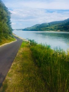 We joined the route about 20 miles north of Vienna in the satellite town of Stockerau. We followed commuters, in-line skaters and people out for an evening jog down a fairly non-descript concrete path until all of a sudden, boom! We rolled down a little ramp and there it was – the beautiful blue Danube.