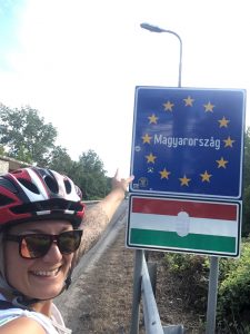 After leaving the island, we cycled through Slovakian countryside and the path stretched ahead of us as far as the eye could see. Finally, we took a right turn up to the road and began to cross a bridge. Like crossing many other borders in the Schengen zone, there was not much to distinguish that we had left Slovakia and entered Hungary, but we never miss an opportunity to take a selfie with a border sign.